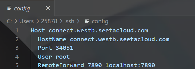 随后,根据本地设置的端口(此处为7890), 然后在 SSH